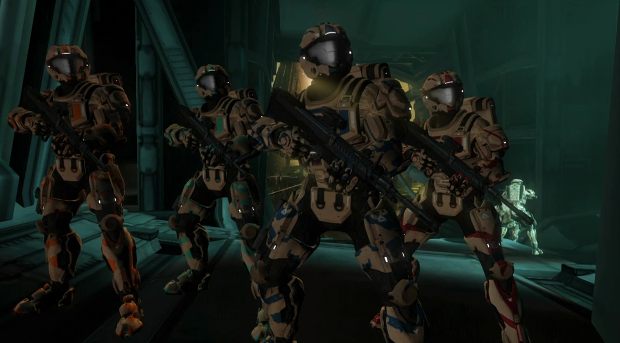 After the Reds and Blues shut down the droids, Bitters, the Lieutenants, Dr. Grey, Kimball, and the Freelancers fly to the Staff of Charon to evac the Reds and Blues on the ship.