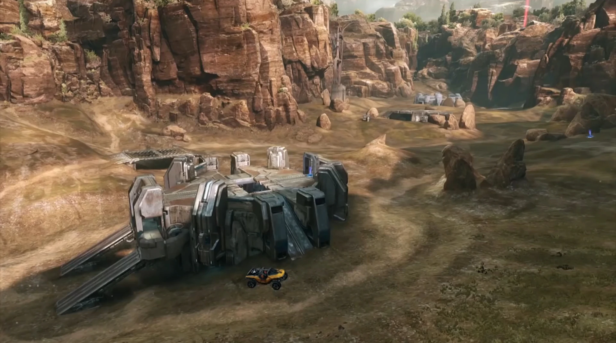 - For the description of Hemorrhage, it states "Many call this curious gorge their grave, but the early inhabitants only left these outposts behind in memoriam." This could be a reference to Red vs. Blue as both teams haven't been to Blood Gulch in many years.