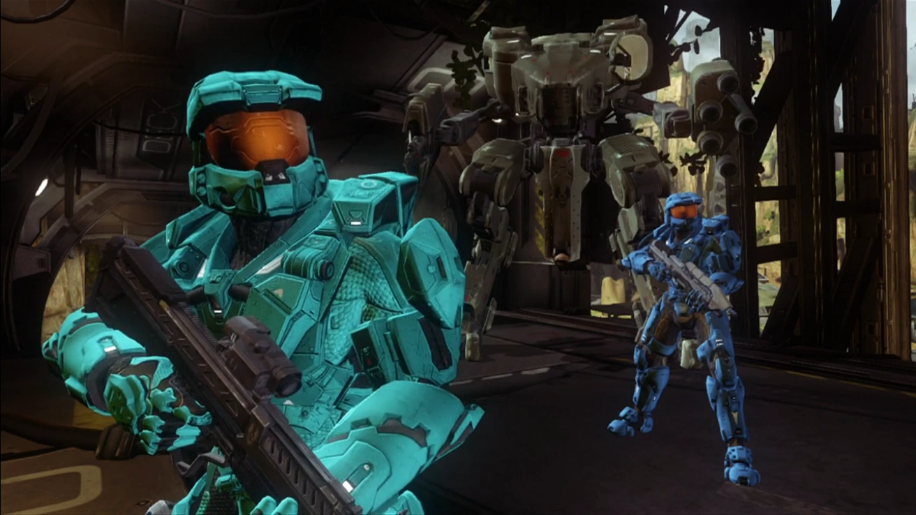 View of Grif and Simmons walking to the Blue base