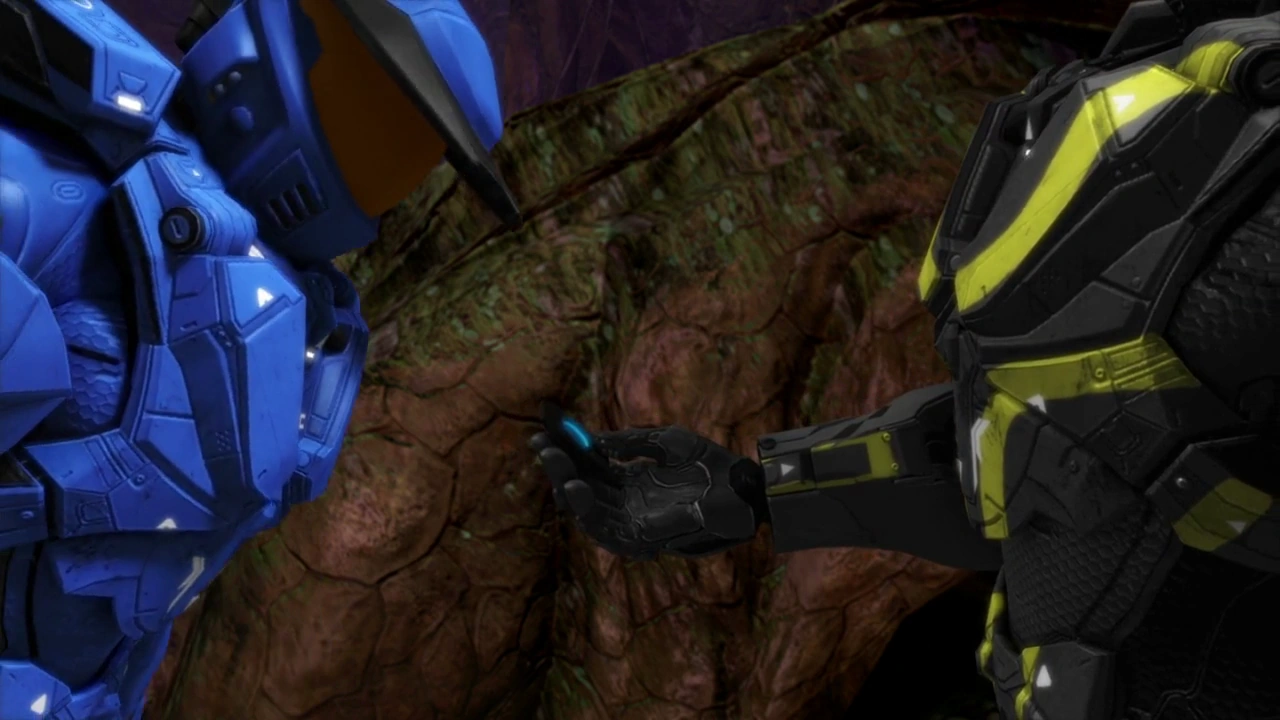 In order to get further information on the advanced alien tech, Grif suggests they analyze the “future cubes.” Carolina makes the connection between the grenades and the Suppressor, and asks Grif how he knew about them. The group then explain that they found the grenades inside the ship. Because the grenades were already on the ship before the crash, Epsilon suggests that they access the ship’s manifest in order to figure out who supplied them. With the everyone agreeing to the plan, Carolina decides that half of the group return to Crash Site Bravo in search for the manifest, while the other half search the second part of the ship at “Crash Site Alpha.”