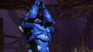 At the Forest Base, the Blood Gulch Crew attempt to take Grif’s Suppressor in order to analyze it, but the latter refuses to give it up, not wanting to relive the moment of when the UNSC confiscated the “Grif Shot”. As a result, Epsilon briefly possess Grif and forces him to release the Suppressor, allowing Carolina to carry out her plan of dismantling it. After she leaves, Caboose asks Wash about Freckles’ whereabouts, prompting the others to leave in order to avoid the question. Nervous about telling Caboose of what happened to his pet, Wash hands Caboose Freckles’ storage unit. Fortunately, instead feeling saddened, Caboose becomes overjoyed at Freckles’ new state and places the unit in his pocket for safekeeping.