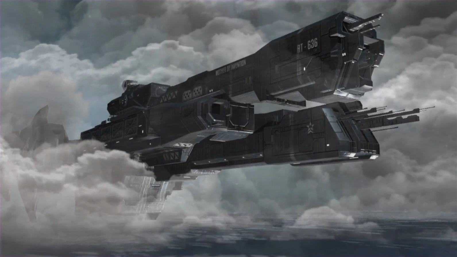 The clouds begin to clear, revealing the UNSC Frigate Mother of Invention, which fires off another beam from where the MAC would be, destroying the other fleeing Longsword.