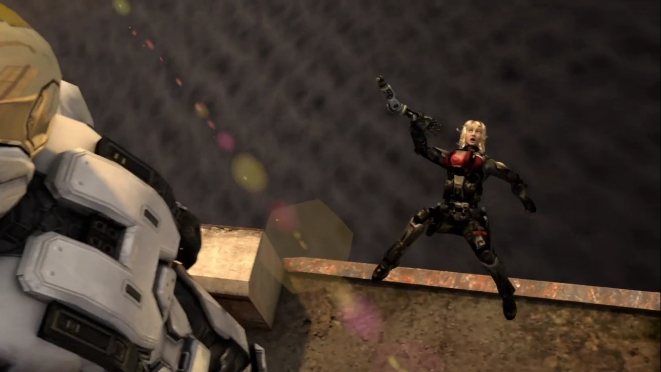 Girlie was part of the response team sent after Team A in order to recover the briefcase. She, along with two other soldiers, got off of her Hornet with a jet pack and attacked Team A. She had a brief fight with Carolina on Team A's Warthog and managed to get the briefcase from Maine. In response, Carolina kicked her off the Warthog & recovered the briefcase back. Her partner knocked it out of Carolina's hands and was then flown off the Warthog (via York), landing on a truck. Carolina obtained the briefcase once more, in which this Insurrectionist fired her pistols at her, while her partner tossed oil jugs at Team A's Warthog.