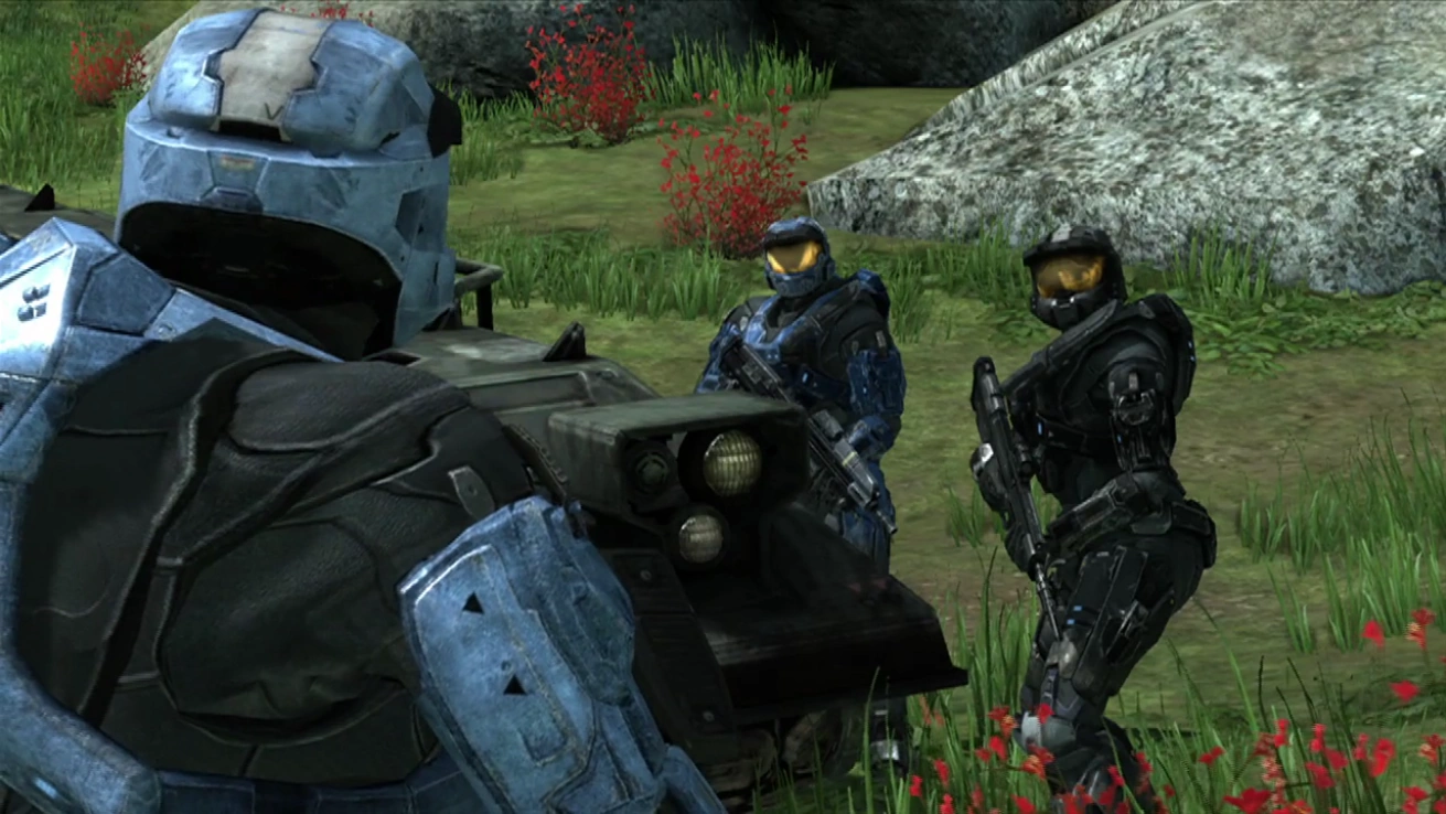 Cut to the Freelancer backstory, where Team A is seen driving on the freeway. York is driving, Maine is riding shotgun and Carolina is manning the turret.
