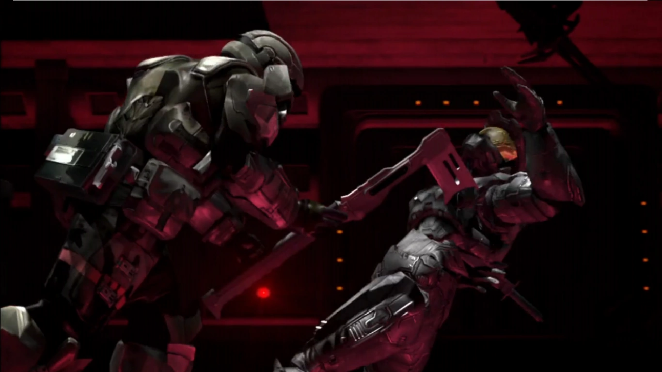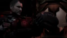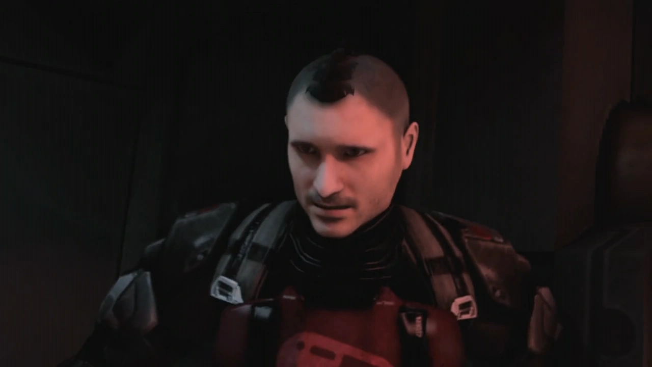 The Insurrectionist Leader appears to have normal ODST armor. His armor color is steel with maroon trim. The leader also seems to wield a knife on his chest plate and an object with a red light on the opposite side. His chest plate displays a capsule emblem, which can also be seen on his shoulder pads. Without his helmet, the Leader is shown to have a mohawk. After C.T.'s death, the Leader took her armor as well as her identity. Because of this, the Leader's armor appearance resembled C.T.'s throughout Recreation, donning an EOD helmet. However, he loses her EOD chest and Scout shoulder pauldrons, replacing them with Mark VI chest and shoulder pauldrons.