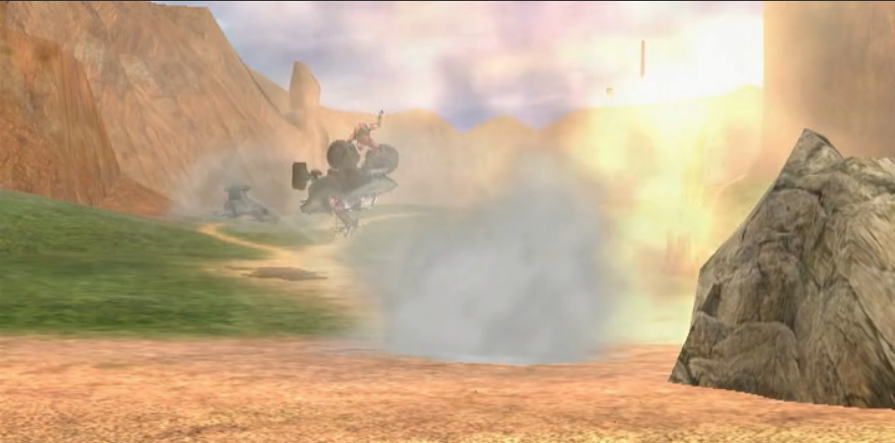 Sarge: Simmons, I'm coming around in the Warthog. Get ready to take the gunner position when I come by.