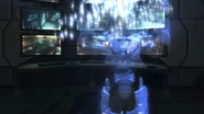 To assist him, Epsilon utilizes the memories of the past Freelancer A.I. fragments: Delta, Theta, Eta, Iota, Omega, Gamma, and Sigma. With their help, Epsilon is able to sabotage the soldiers' weapons to lower their accuracy, knock aside a floor panel underneath one guard who recently had knee surgery, and use the breached door as a makeshift shield. During the analysis, the Delta portion of Epsilon's personality worries about the possibility of Carolina being injured, but Epsilon dismisses him and states that he should have faith in Carolina. After Epsilon completes his analysis, Carolina receives it and successfully overpowers the three guards, but is mildly injured in the process. She then steals one of the guard's helmets and makes her escape.