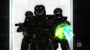 Epsilon turns around and looks at the guards, still "frozen" in time, while he throws away his holographic sniper rifle, which disappears.