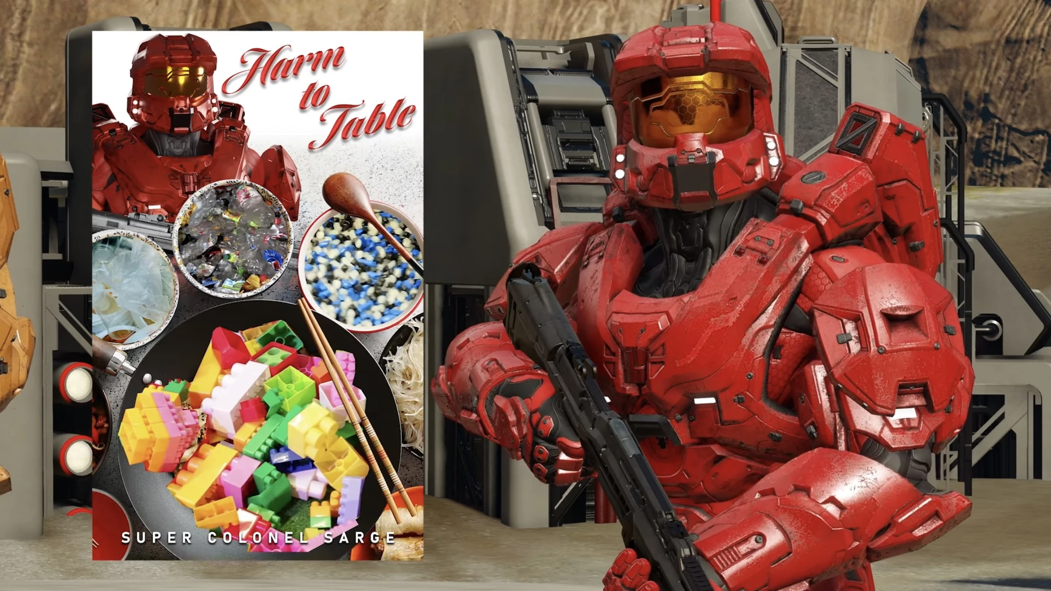 - Sarge states he eats macroplastics and wrote a cookbook on macroplastic based recipes titled "Harm to Table", which has recipes including "Chicken Corded Bleu", "Slimming Turkey Cellophane Wraps", "Sloppy Hose", "Spaghetti and Meatbottles", "Straw-Berry Shortcake", and "Pool Noodle Casserole".