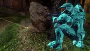 Cut to Locus' soldiers attacking Blue base. Tucker fires back from cover.
