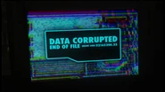 The screen flashes repeatedly and an error message appears stating: "DATA CORRUPTED END OF FILE ERROR CODE 32165206.35".