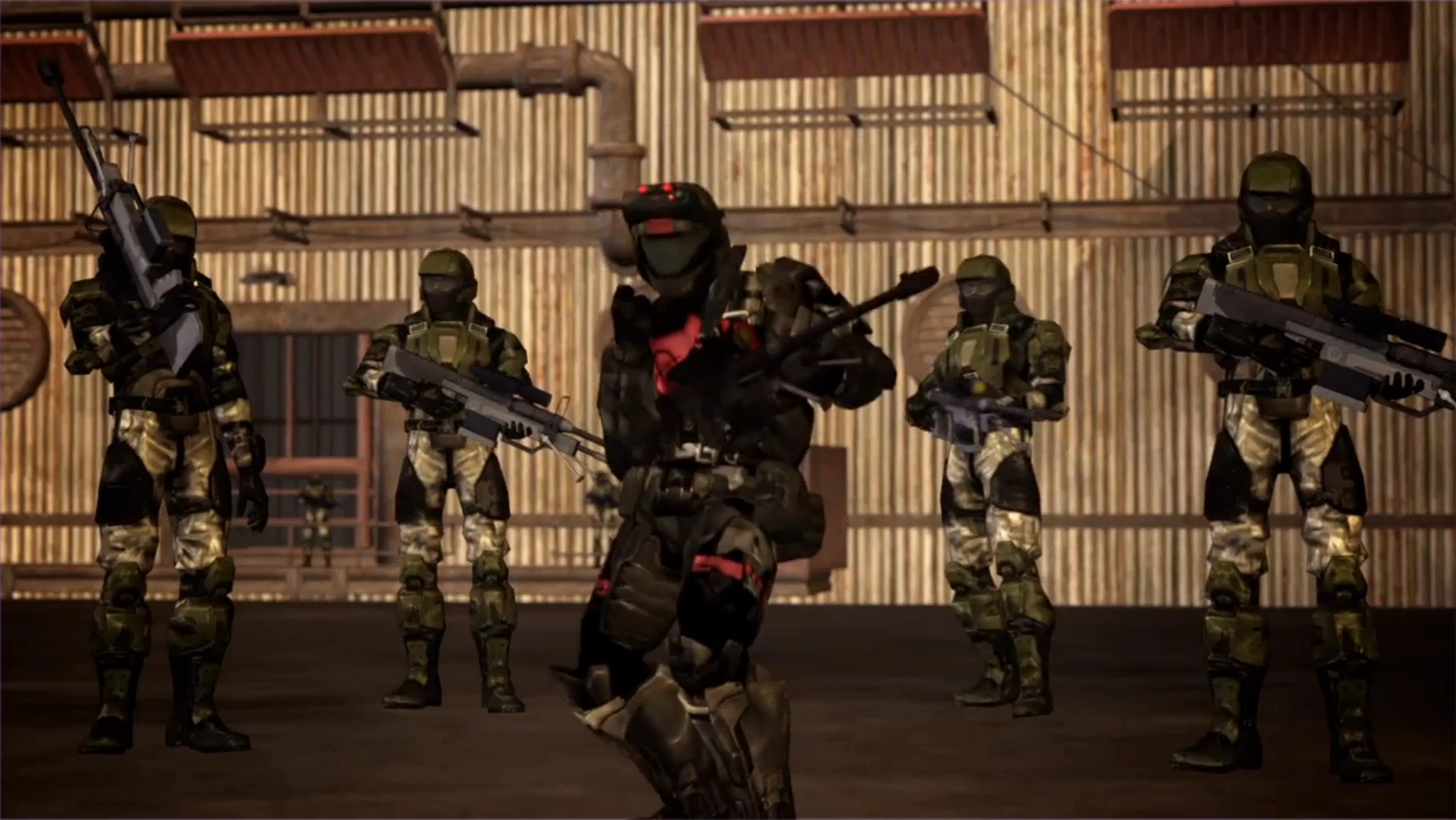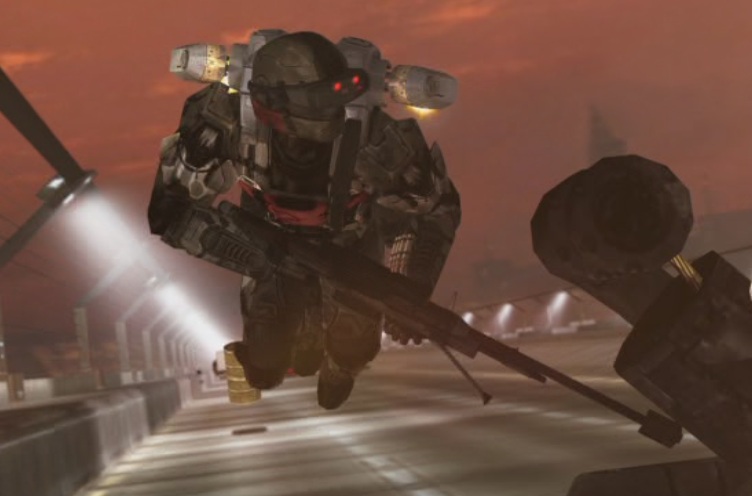 The sniper was originally seen in a flash of a team of Insurrectionists walking down the highway in Planning the Heist. However, he was first seen in person when he was sent as part of a response team to recover the briefcase from Team A. He shot Maine in the chest with his sniper rifle during the chase and nearly shot Carolina. However, York soon caught up to the truck he was on and rammed into it, sending the soldier off. Using his jetpack, however, the sniper was able to survive and get back into the fight. As he was flying to help his two allies, however, Maine punches him, causing him to hit a wall. Later, he is briefly seen on the passenger seat of a Warthog attempting to shoot down Tex, who passes by him on her motorcycle.