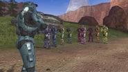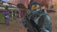 Sarge: Ha, thank you Simmons! Blues, you've had your fun, now it's over! If it's all the same to you, I'd like to postpone your crushing defeat for a moment longer as I have prepared a short speech. Simmons! Like we practiced.