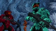 After Tucker kills the deluded Fed, the four realize that the path from the tunnel to the detention facility is heavily guarded. So, in order to trail the Feds off, the Reds and Blues cause an alarm to go off by having Caboose shoot a sewer pipe, which leads the Feds away from the detention facility successfully. As the Reds and Blues make it to the facility, Tucker tells Simmons to unlock the door, but the latter becomes pressured and nervous. Without warning, the door miraculously opens and the four encounter Wash, Sarge, Donut, and Lopez standing in their path. With both groups confused as to why the other is here, the Blood Gulch Crew stand motionless in the doorway.