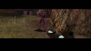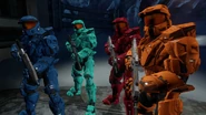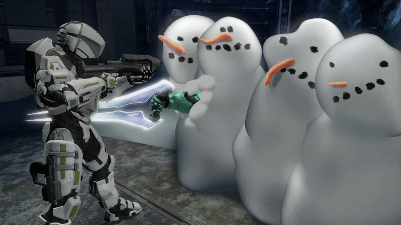 Meanwhile, Tucker, Simmons, Grif, and Caboose arrive at the Federal Army compound where their friends are being held. As the four come up with ideas to break into the faciltiy, they collectively decide upon 'melting their way in', an idea courtesy of Caboose. To do this, Tucker stabs his sword into the icy floor and causes the heat from it to melt away the ground, which in turn causes the four to fall through the hole and into a tunnel. They, unfortunatley, get the attention of a Fed, who slowly approaches their position after hearing their screams. The group then hastily construct and hide inside four snowmen, successfully managing to fool the Fed when he arrives.