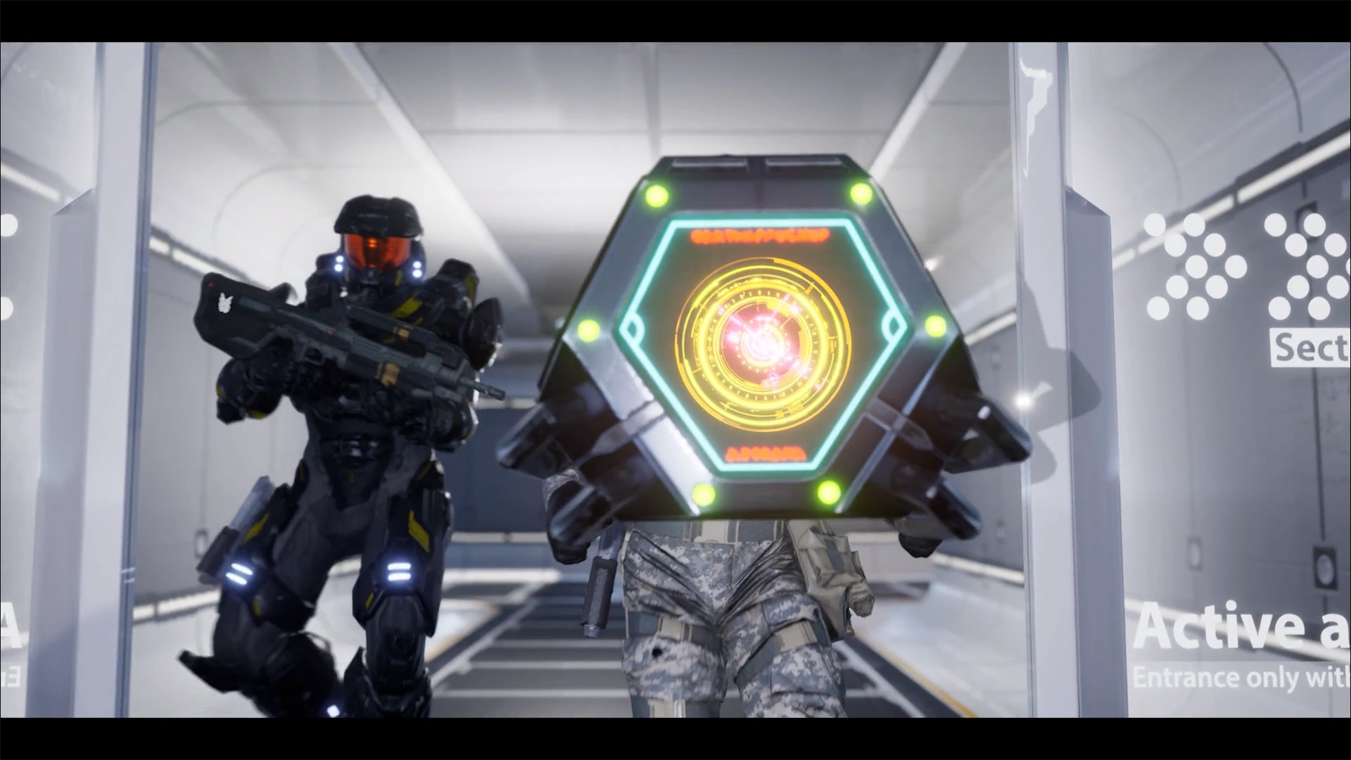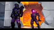 Elsewhere, four colorfully-armored soldiers speed around in a canyon in a pair of warthogs. The two drivers, Agents One and East, grow competitive with each other and race towards their destination. Their passengers, Agent Axel and rookie Raymond, protest their actions. As the race gets more intense, the four soldiers finally reach their destination, just barely colliding into their commanding officer: Agent West. The team, known as Shatter Squad, stand in attention before West, who scolds them for their actions. However, rather than punish them, West tells them that bigger problems have arose. Just then, Raymond vomits inside his helmet.
